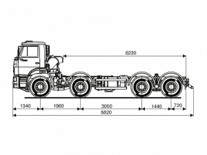 Шасси 6*4, длина рамы 5 970 мм, межосевое растояние мм, грузоподъемность 12 тонн